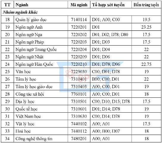Với nhóm ngành sư phạm, điểm chuẩn trúng tuyển từ 18,5 điểm cho đến 24 điểm.
