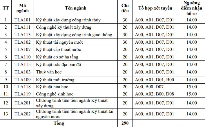 Theo đó, cơ sở Hà Nội tổng chỉ tiêu xét tuyển bổ sung là 290 cho 13 ngành đào tạo. Cụ thể, chỉ tiêu và ngưỡng điểm nhận hồ sơ từng ngành như sau: