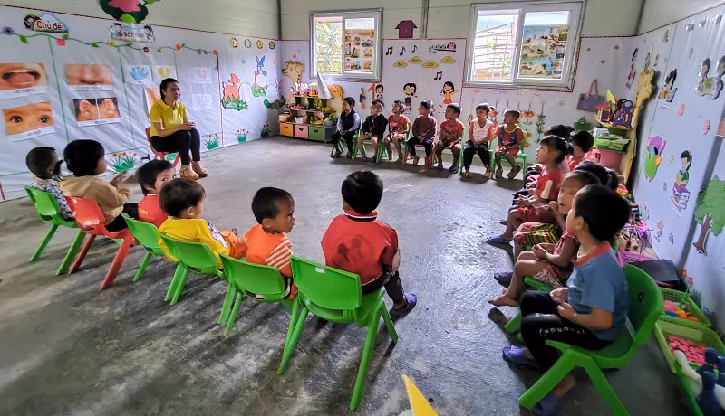 Khó khăn, cách trở là vậy, song mỗi điểm thường chỉ có một cô và chừng 10 đứa trẻ theo học. Vì đều là các điểm khó khăn, nên để đảm bảo công bằng, nhà trường thực hiện luân chuyển giáo viên hàng năm.
