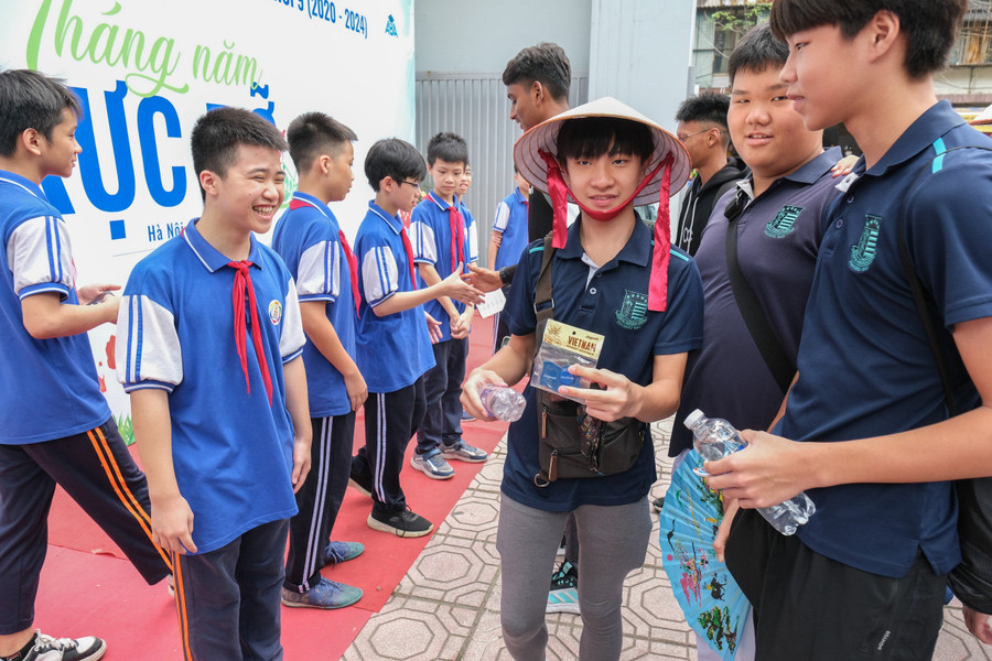 | Học sinh trường THCS Thành Công tự tin giao lưu với các bạn đến từ trường THCS Swiss Cottage bằng khả năng ngoại ngữ. |
