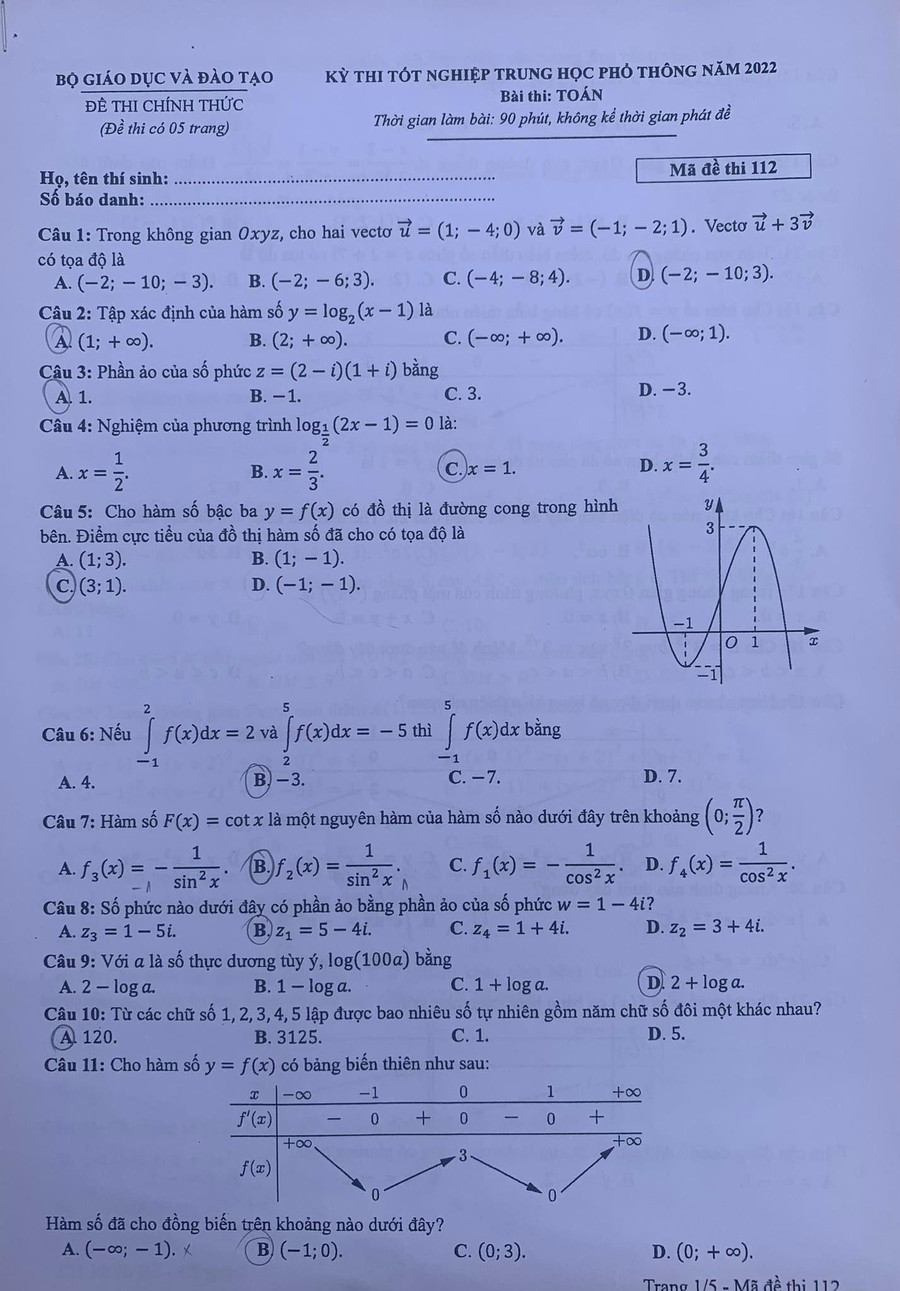 >>> Xem gợi ý đáp án đầy đủ 24 mã đề môn Toán TẠI ĐÂY