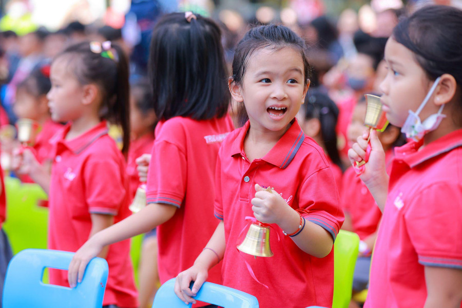 | Tiếng chuông ngân đón các em học sinh, hình ảnh đặc trưng tại TH School. |