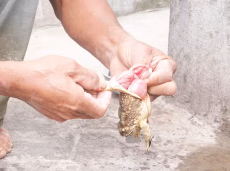 Gan, trứng, da cóc có độc tố bufotoxin và một số chất khác, có thể gây ngộ độc 1-2 giờ sau khi ăn.