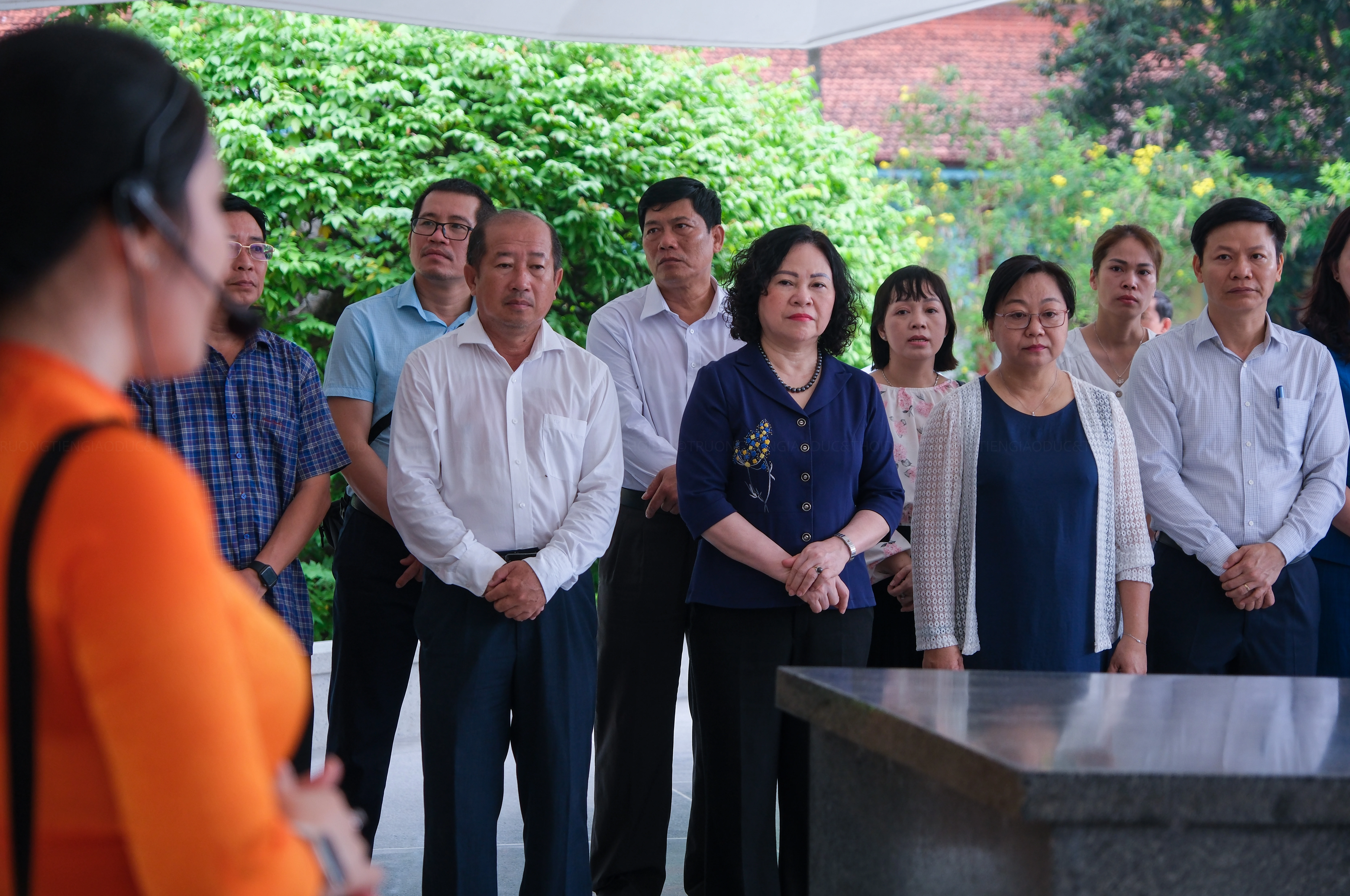| Thứ trưởng Bộ GD&ĐT Ngô Thị Minh cùng lãnh đạo UBND tỉnh Đồng Tháp và Sở GD&ĐT các tỉnh đến viếng Cụ Phó bảng Nguyễn Sinh Sắc. |