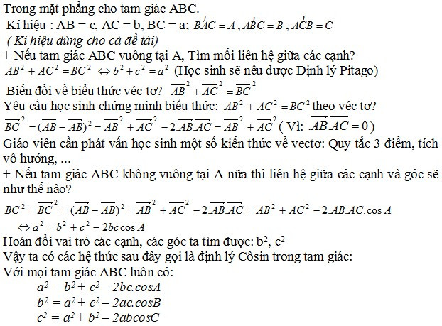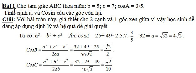 Áp dụng cụ thể với tìm hiểu định lý Cosin