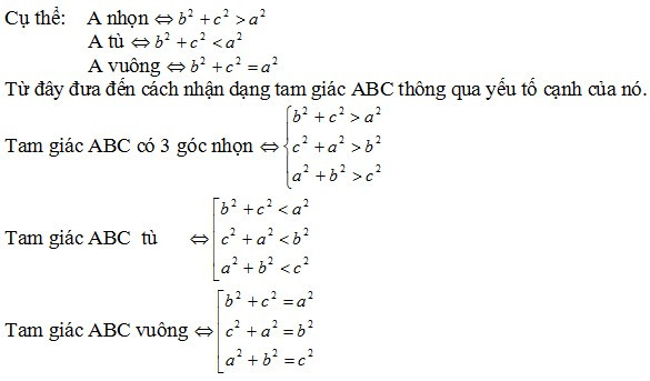 3. Cho phép ta xét được các góc trong tam giác là nhọn, tù hay vuông thông qua các yếu tố cạnh của tam giác.