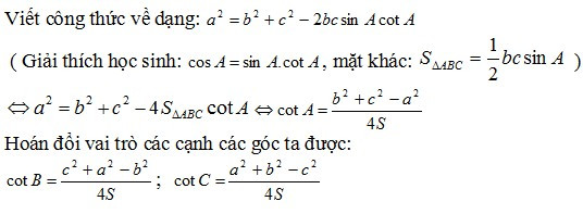 Đây là định lý “Cosin suy rộng trong tam giác”, cho ta hệ thức lượng giác về mối liên hệ giữa các góc của tam giác với 3 cạnh cùng diện tích của nó. Lớp các bài toán áp dụng nó khá rộng.