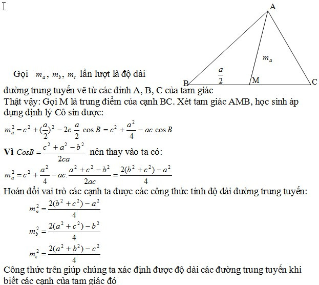 4. Xây dựng công thức tính độ dài đường trung tuyến trong tam giác:
