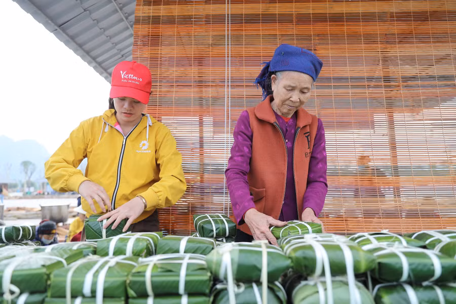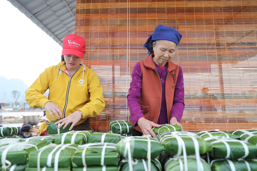 | Một phần trong số 10.000 bánh chưng xanh được gói ngày hôm nay cũng sẽ được các tình nguyện viên mang đến tặng bà con ở những xã, huyện vùng sâu, vùng xa của tỉnh Sơn La còn khó khăn. |