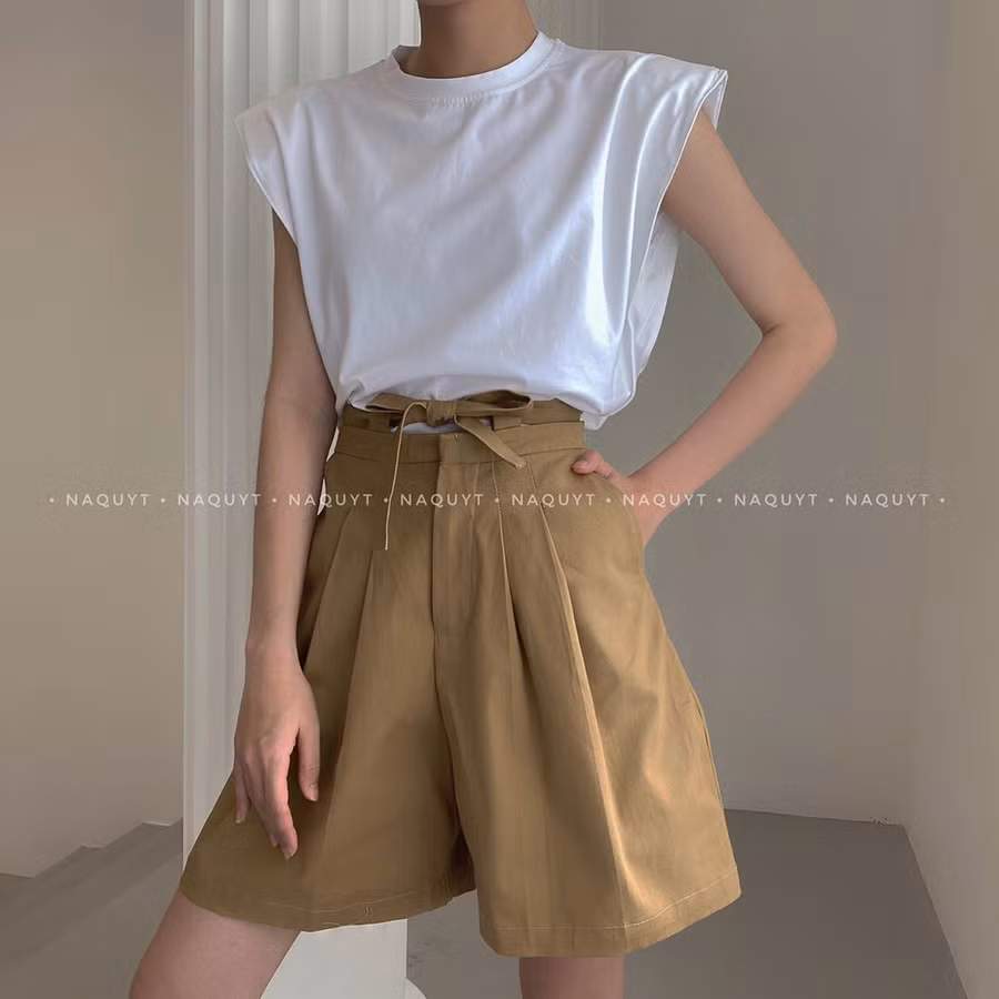 Hè đến không thể thiếu quần shorts. Vậy nên bạn chớ bỏ qua mẫu quần shorts xếp ly nhẹ mát của Na Quyt nhé! Chưa kể, nếu kết hợp thêm áo phông độn vai, bạn nhất định tìm thấy outfit sành điệu, hợp thời.