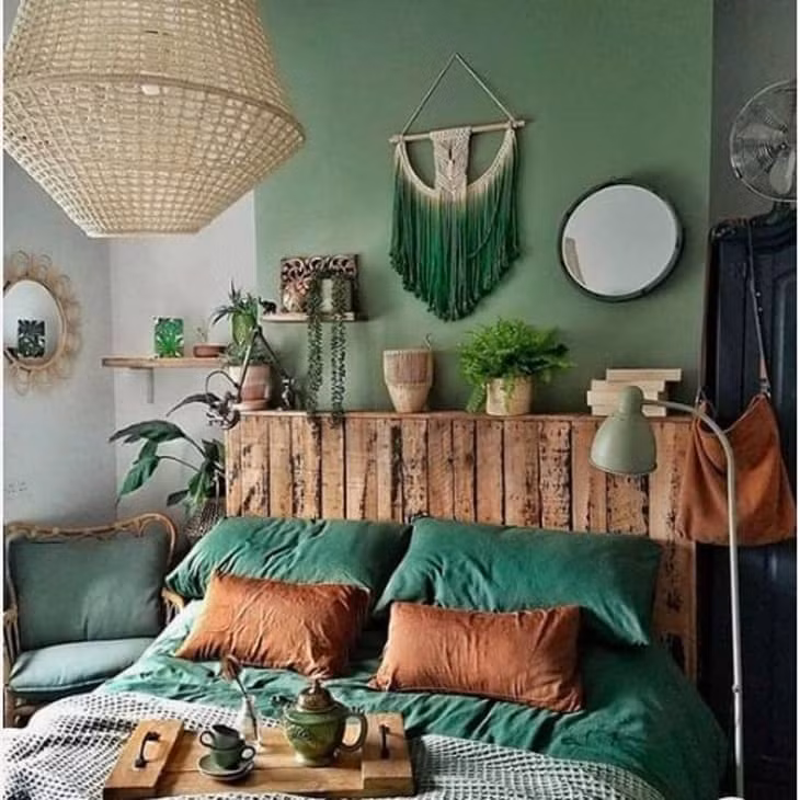 10. Giường pallet màu xanh lá lấy cảm hứng từ thiên nhiên
