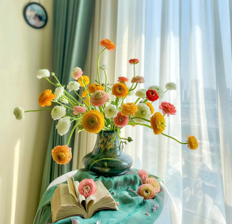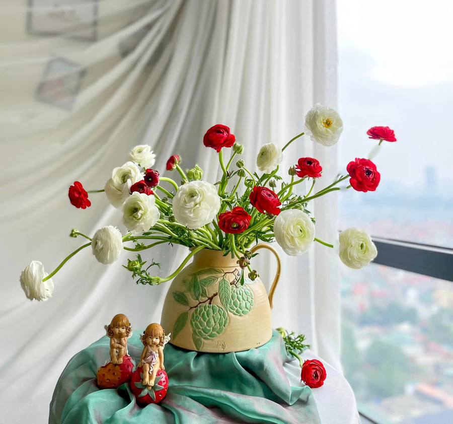 Chị Thanh Thủy chia sẻ: “Cắm hoa là cách chị thư giãn tốt nhất sau một ngày làm việc căng thẳng. Mỗi khi về nhà, thấy bình hoa tươi dường như mọi mệt mỏi đều tan biến hết, ngôi nhà như tăng thêm sinh khí”.