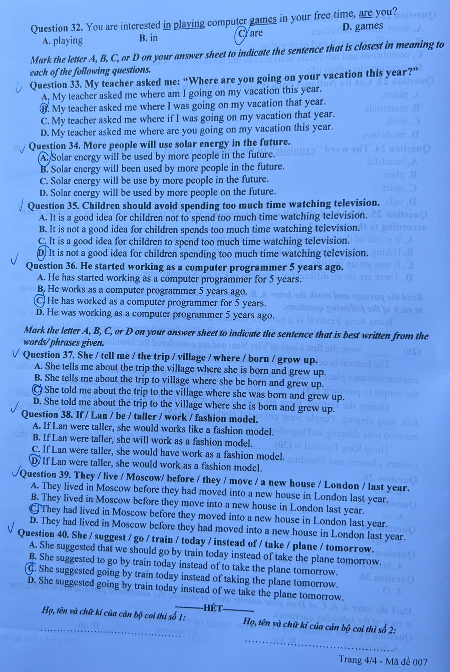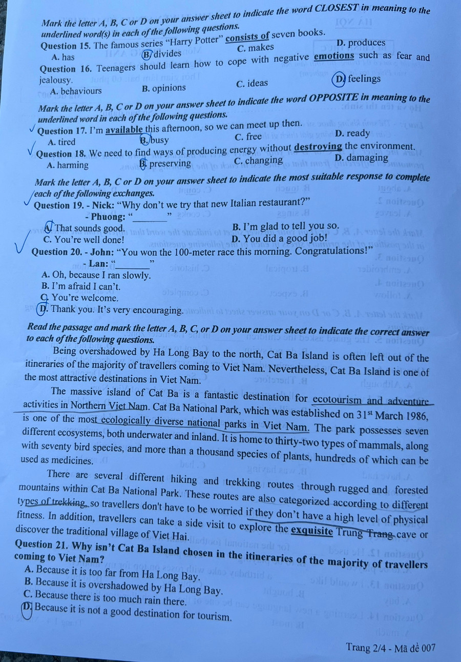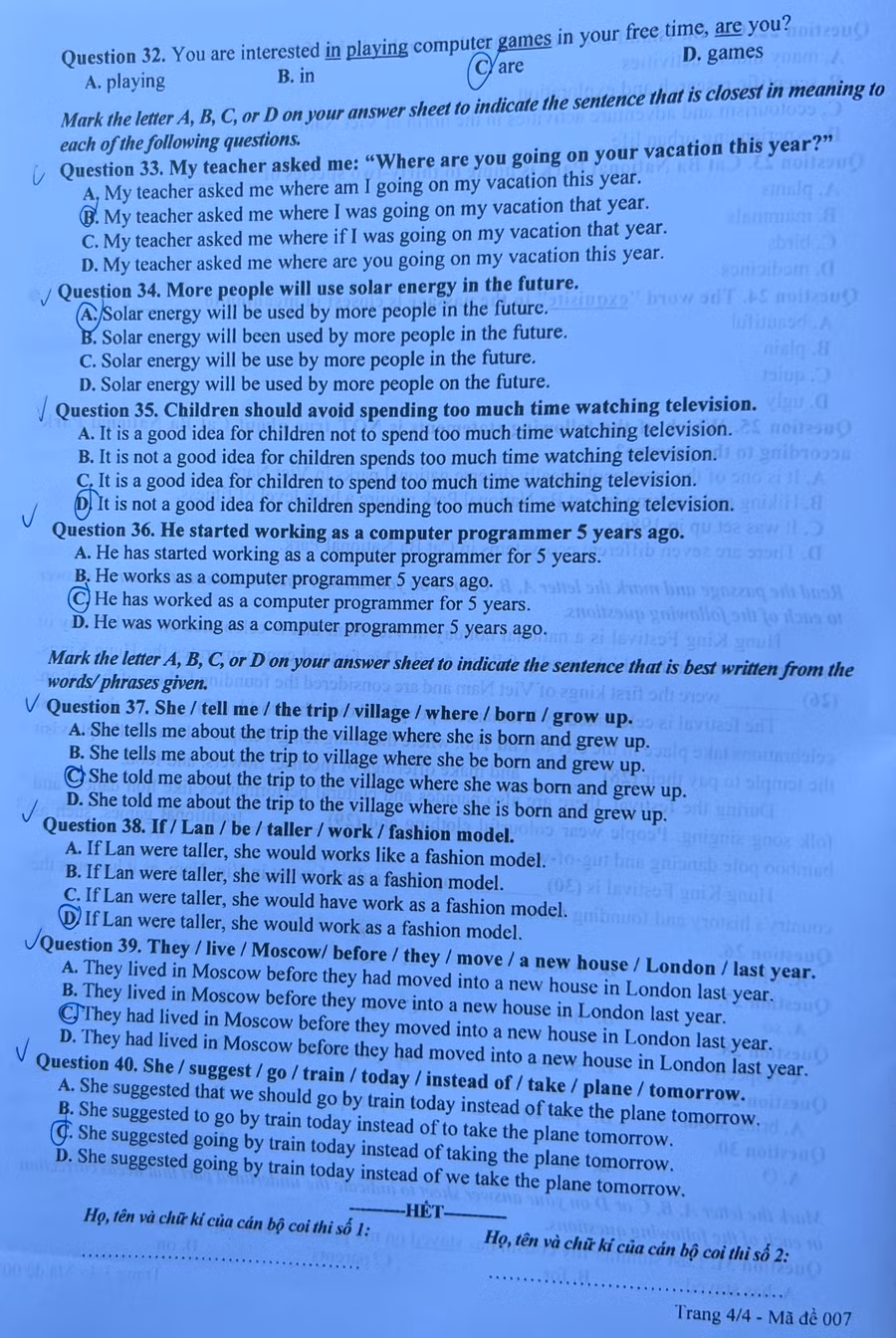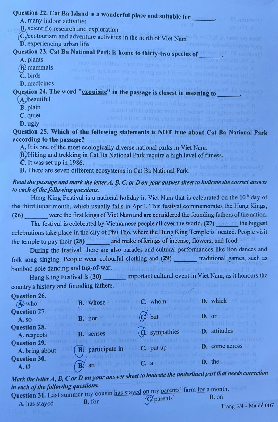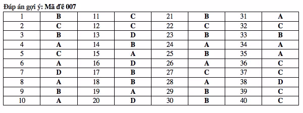 Dưới đây là đề thi và đáp án môn Tiếng Anh: