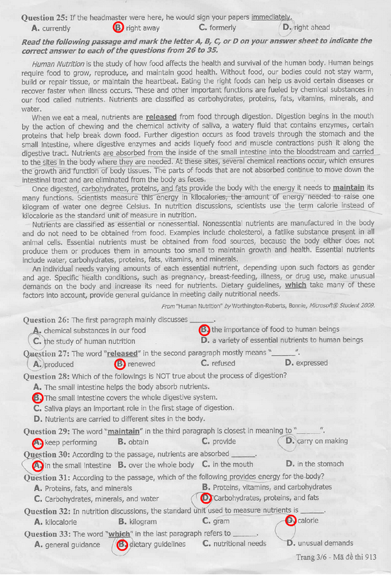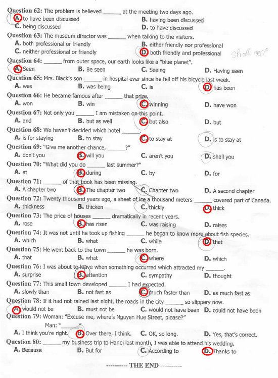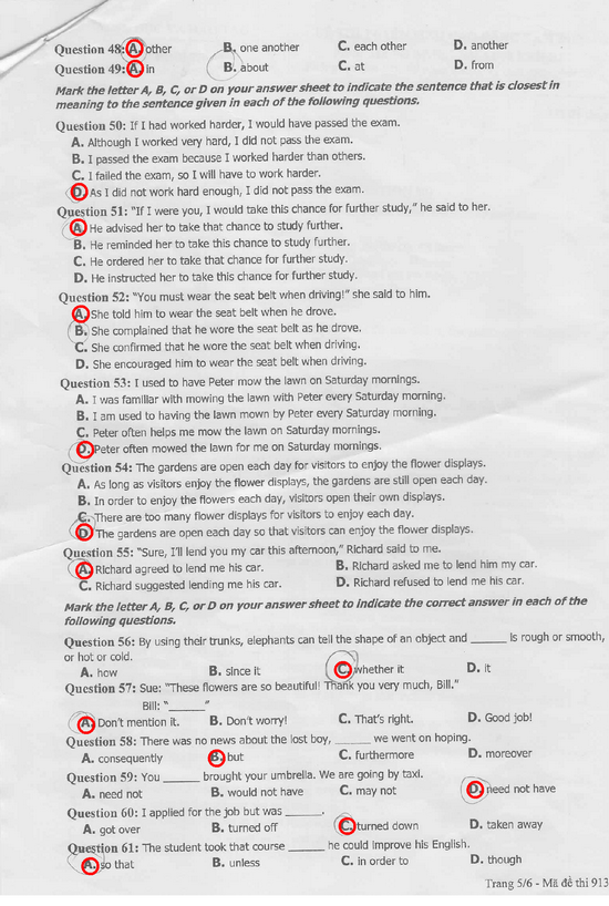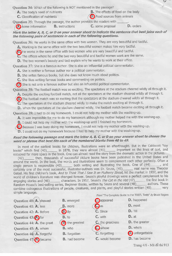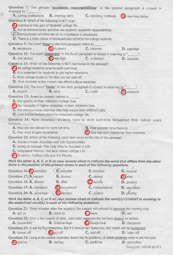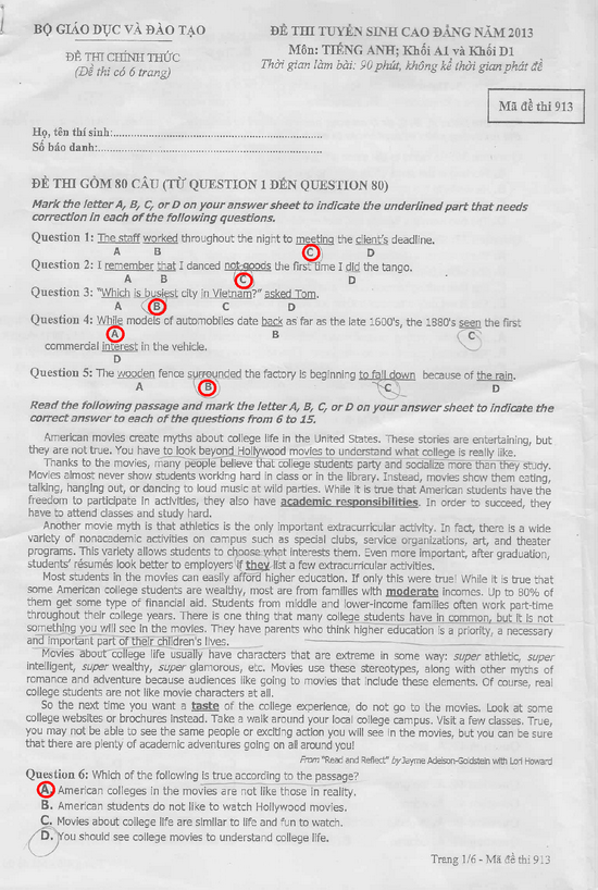 (GD&TĐ) - Báo gdtd.vn gợi ý đáp án môn tiến Anh kỳ thi cao đẳng năm 2013