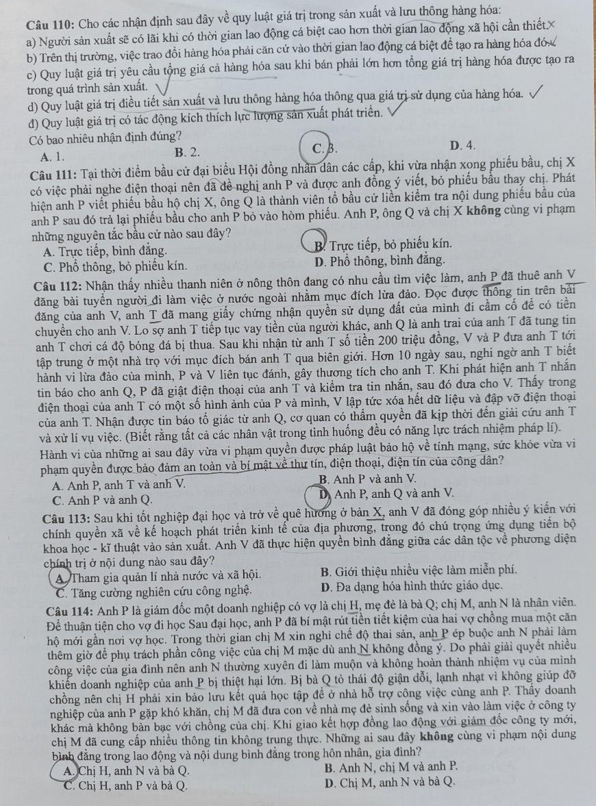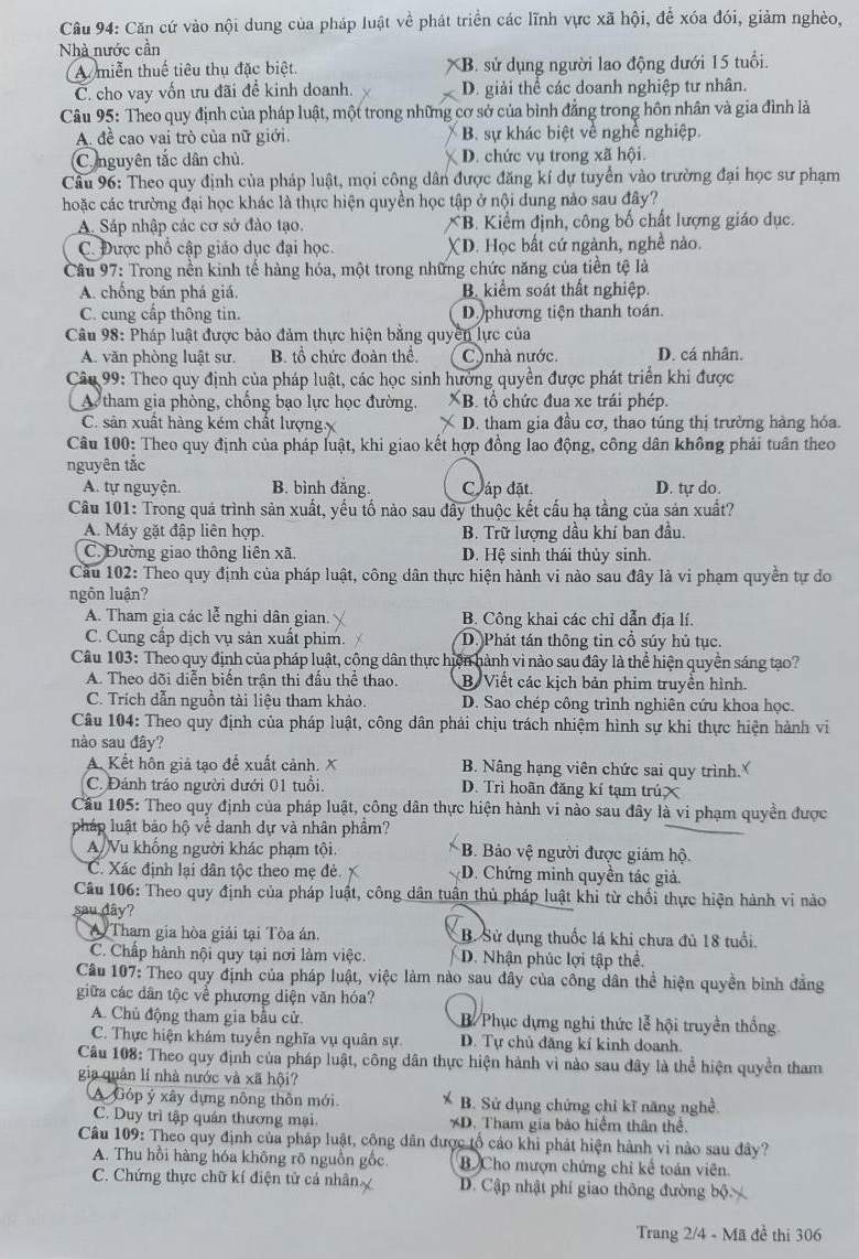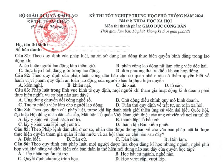 Đề thi môn Giáo dục công dân kỳ thi tốt nghiệp THPT 2024