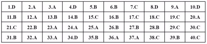 | 31.A | 32.D | 33.C | 34.A | 35.B | 36.C | 37.A | 38.C | 39.D | 40.A |