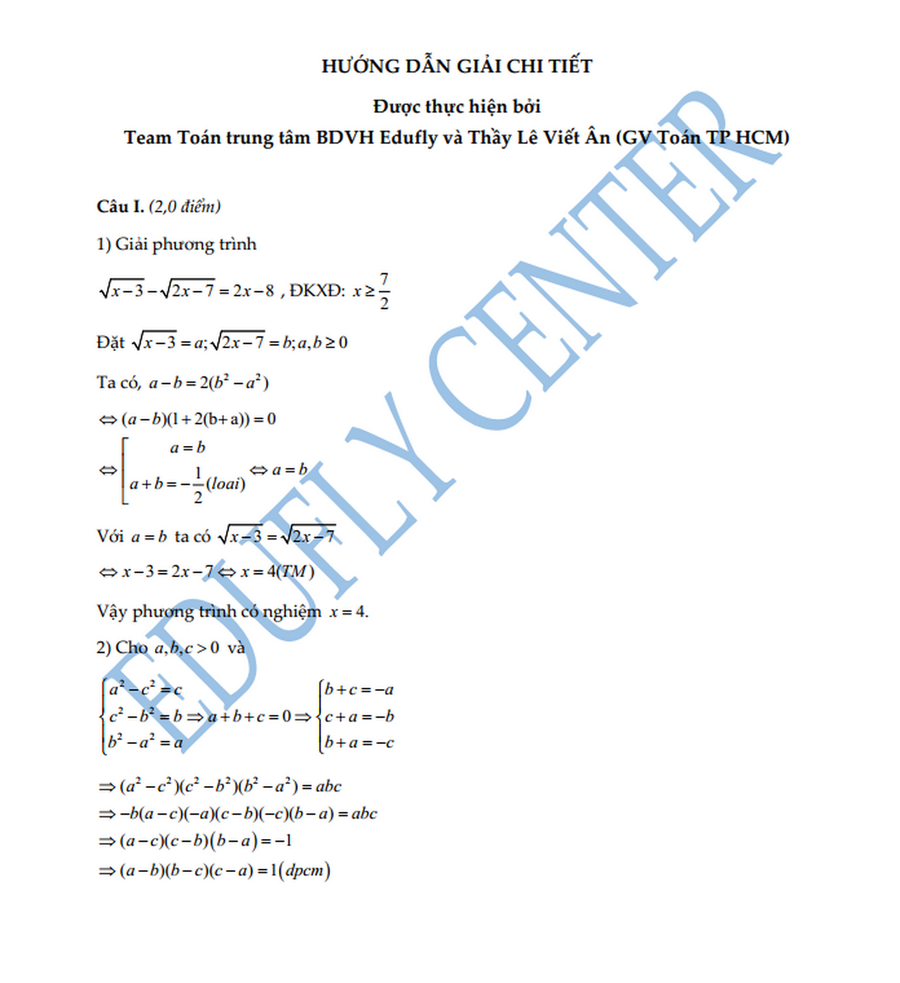 Thầy Lê Viết Ân - giáo viên Toán ở TP Hồ Chí Minh và giáo viên Trung tâm Edufly gợi ý lời giải đề thi Toán vào lớp 10 hệ chuyên của Sở GD&ĐT Hà Nội năm 2023.