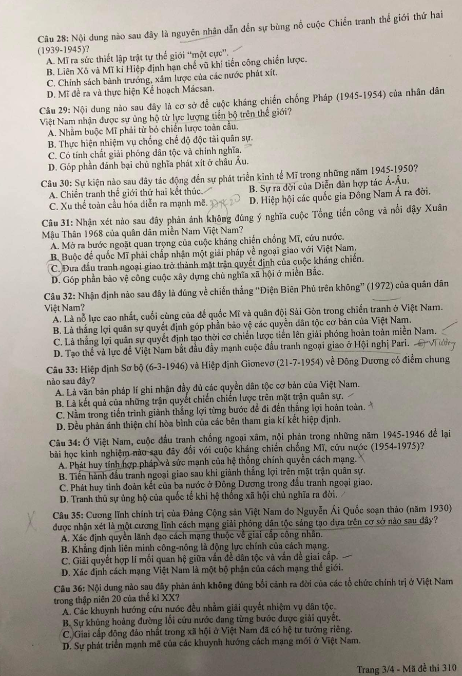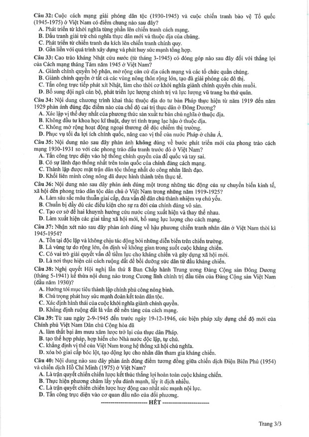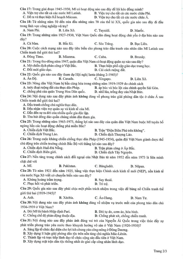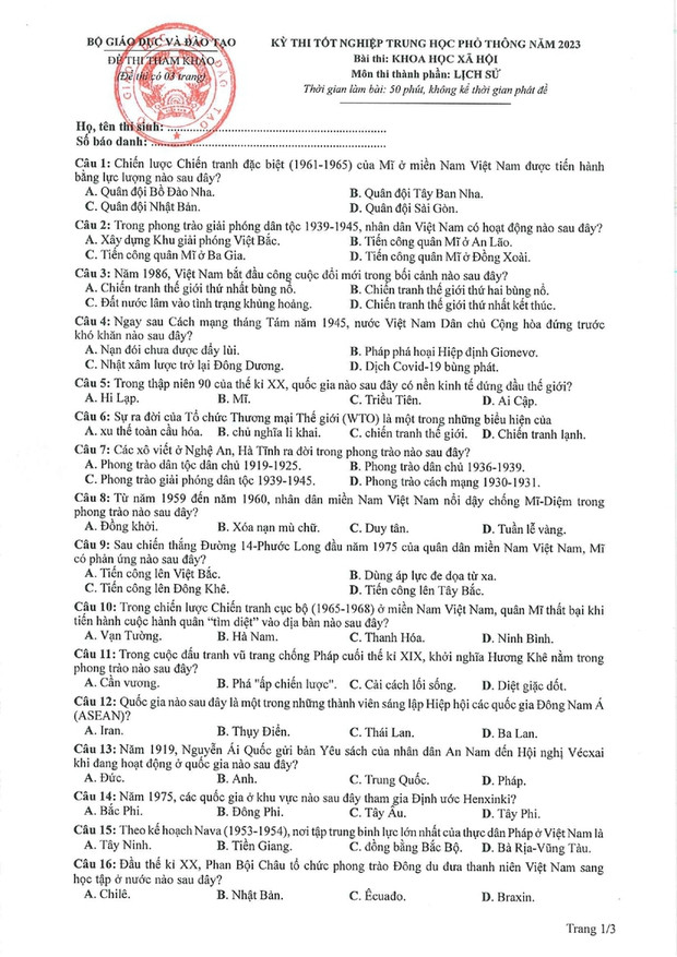 Mời quý độc giả tham khảo đề thi môn Lịch sử thuộc bài thi tổ hợp KHXH kỳ thi tốt nghiệp THPT 2023: