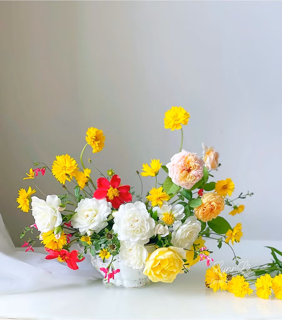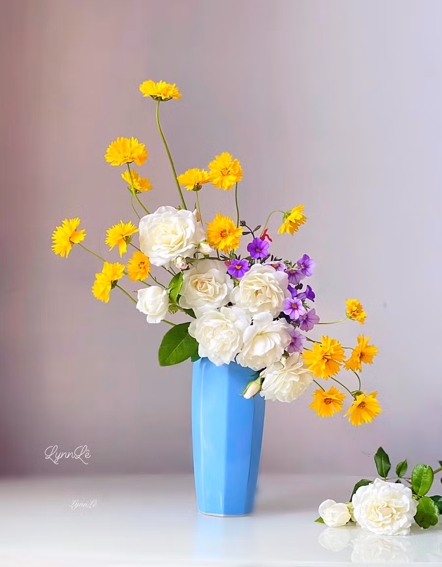 | Hoa cắm trong bình đều do chính tay chị Lynn trồng và chăm sóc. |