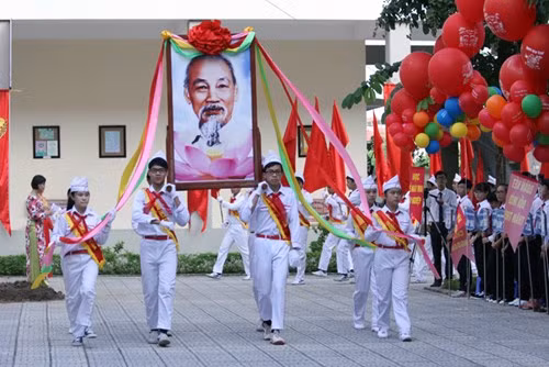 GS.TS Nguyễn Thiện Nhân đã đánh trống khai giảng năm học mới và chia sẻ: "Năm 1945 có 95% người Việt Nam không biết đọc biết viết, đất nước không thể giàu mạnh. Nhưng ngày nay, nước Việt Nam đã là nước phát triển tốt.