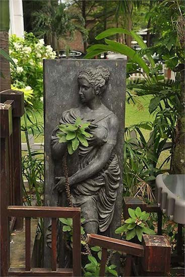 Những bức tượng, phù điêu và các bình gốm được bố trí hợp lý tô điểm thêm vẻ sang trọng cho mái ấm của nữ chủ nhân.