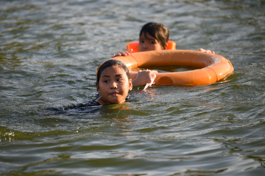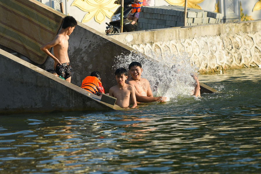 | Không chỉ giải nhiệt, nhiều phụ huynh còn cho con em mình ra đây để rèn luyện kỹ năng bơi lội. |