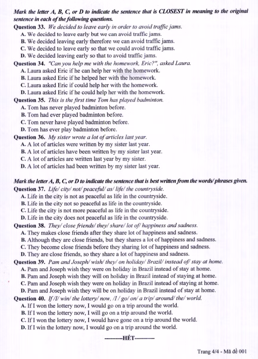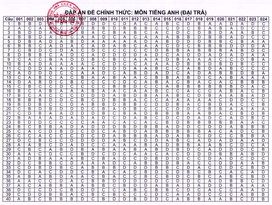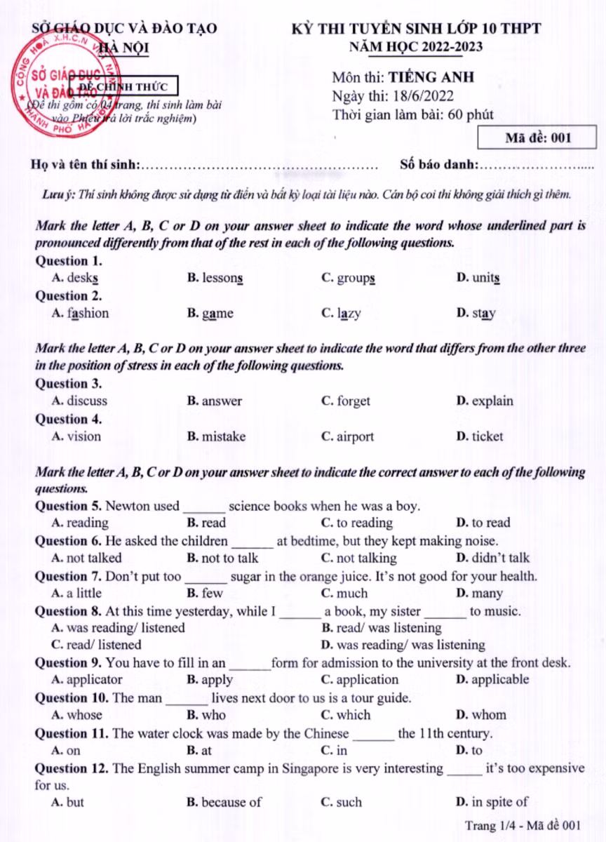 Đề thi và đáp án môn Tiếng Anh