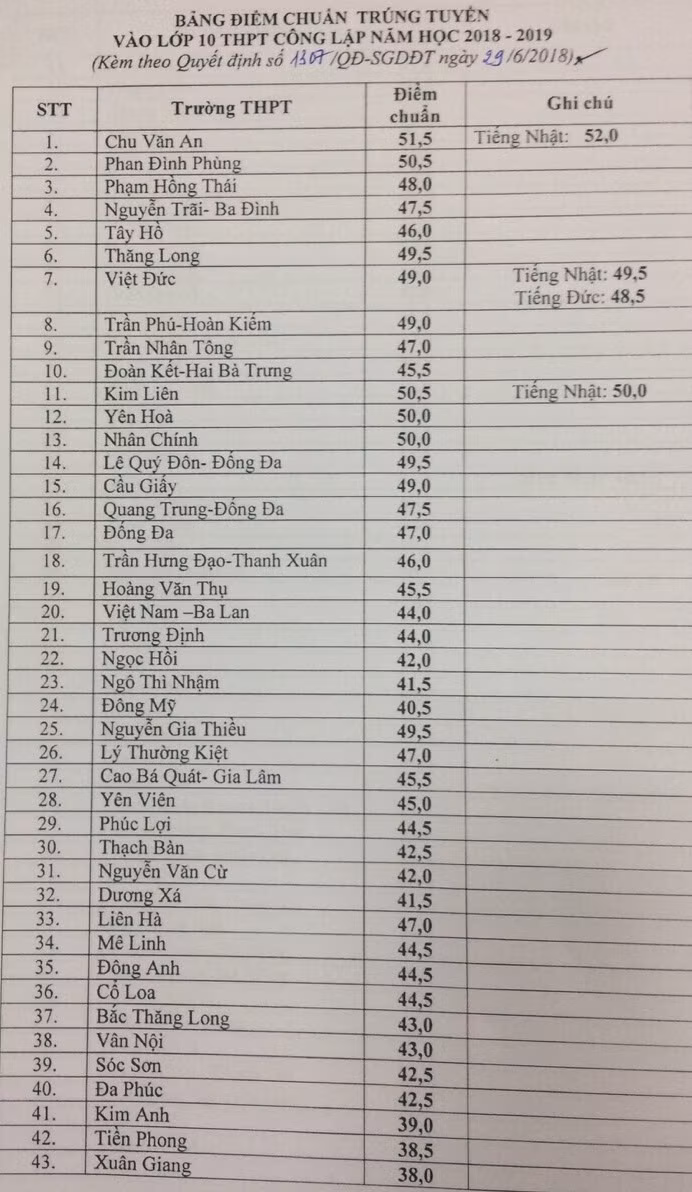 Cụ thể điểm chuẩn vào các trường như sau: