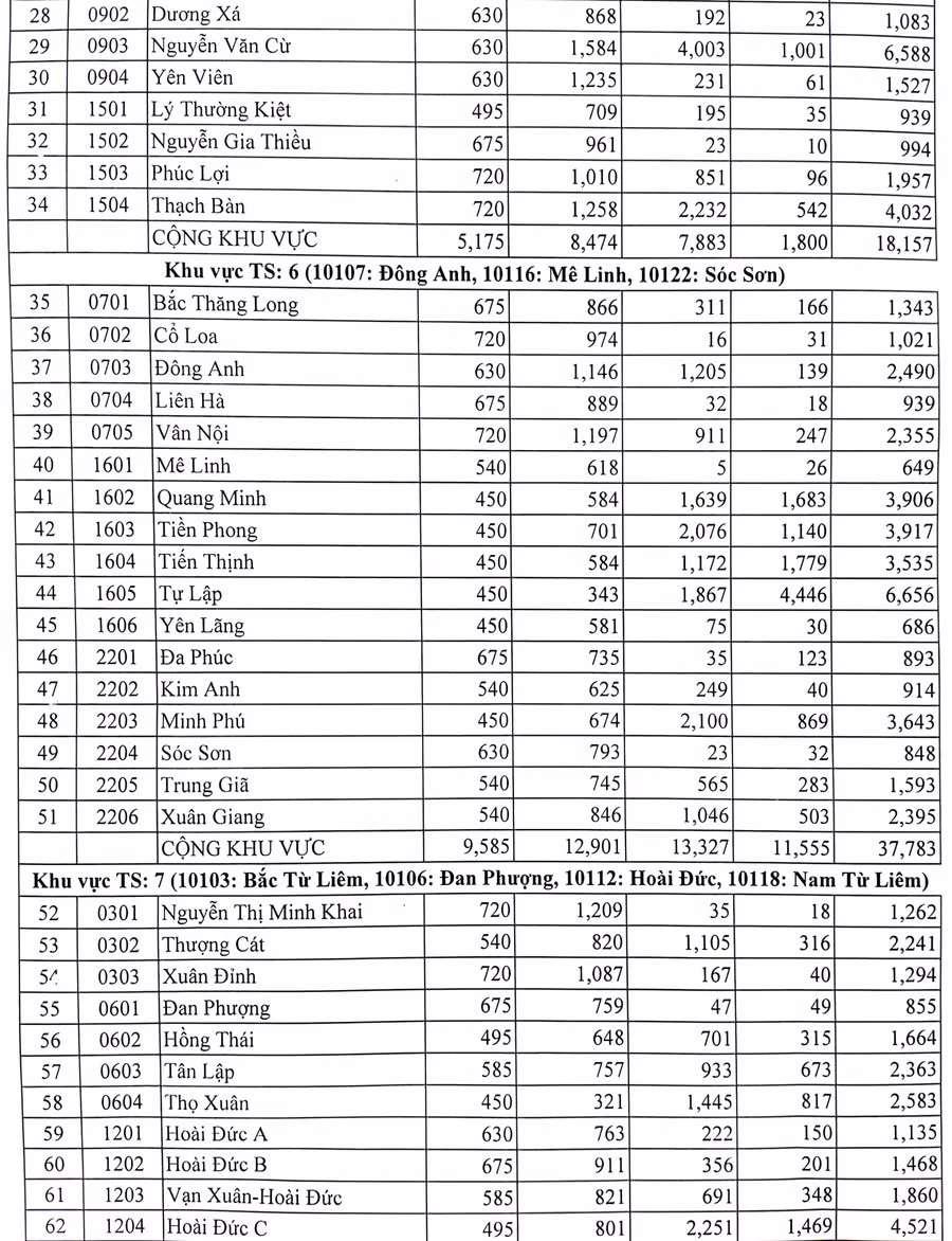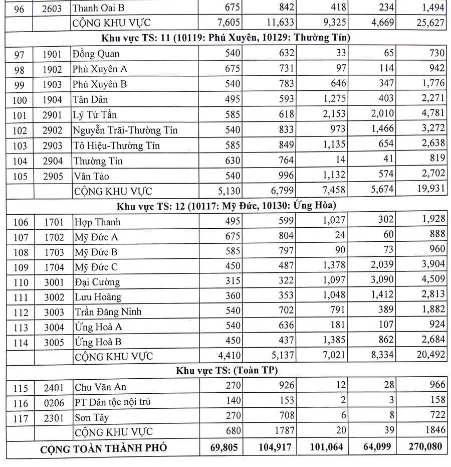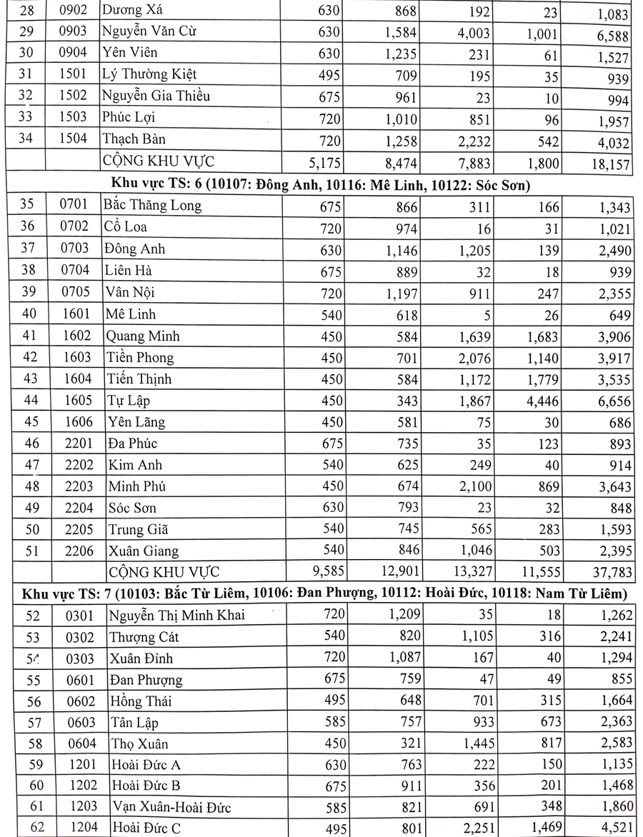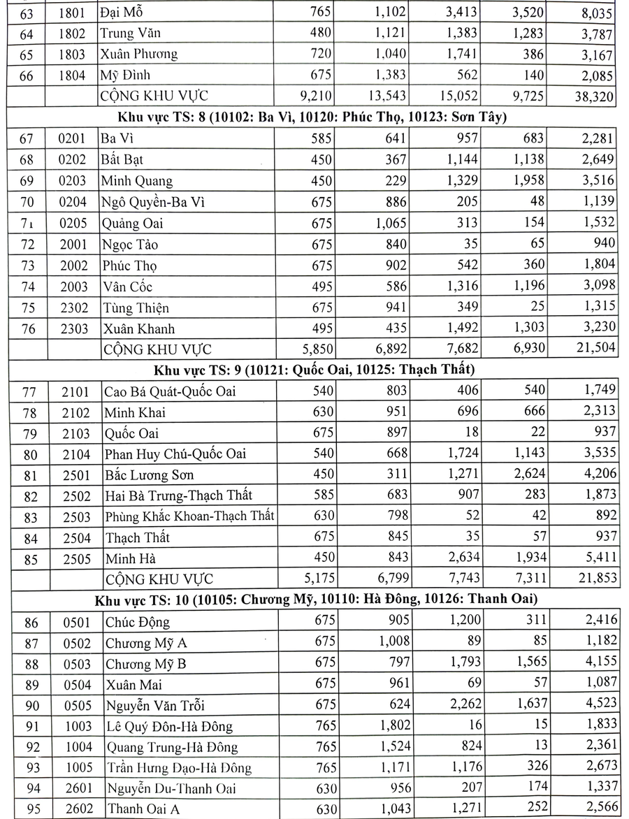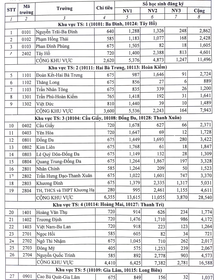 Thống kê số học sinh đăng ký thi vào lớp 10 trường THPT công lập ở Hà Nội năm 2023 như sau: