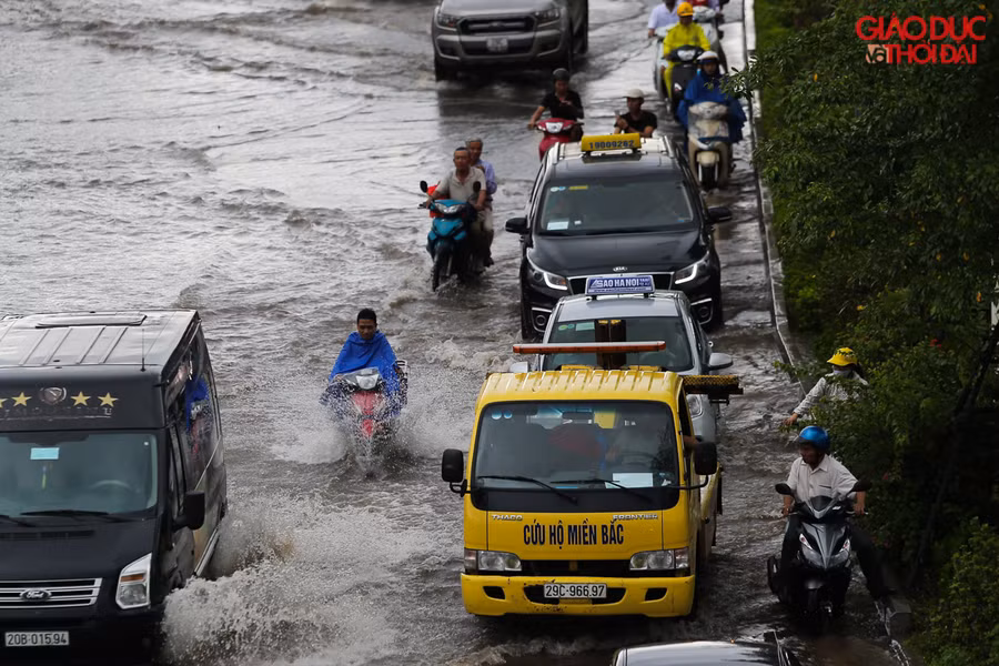 | Nhiều tuyến đường Hà Nội đã "trở thành sông" trong ngày đầu hứng chịu cơn mưa đầu do ảnh hưởng của bão số 3. |