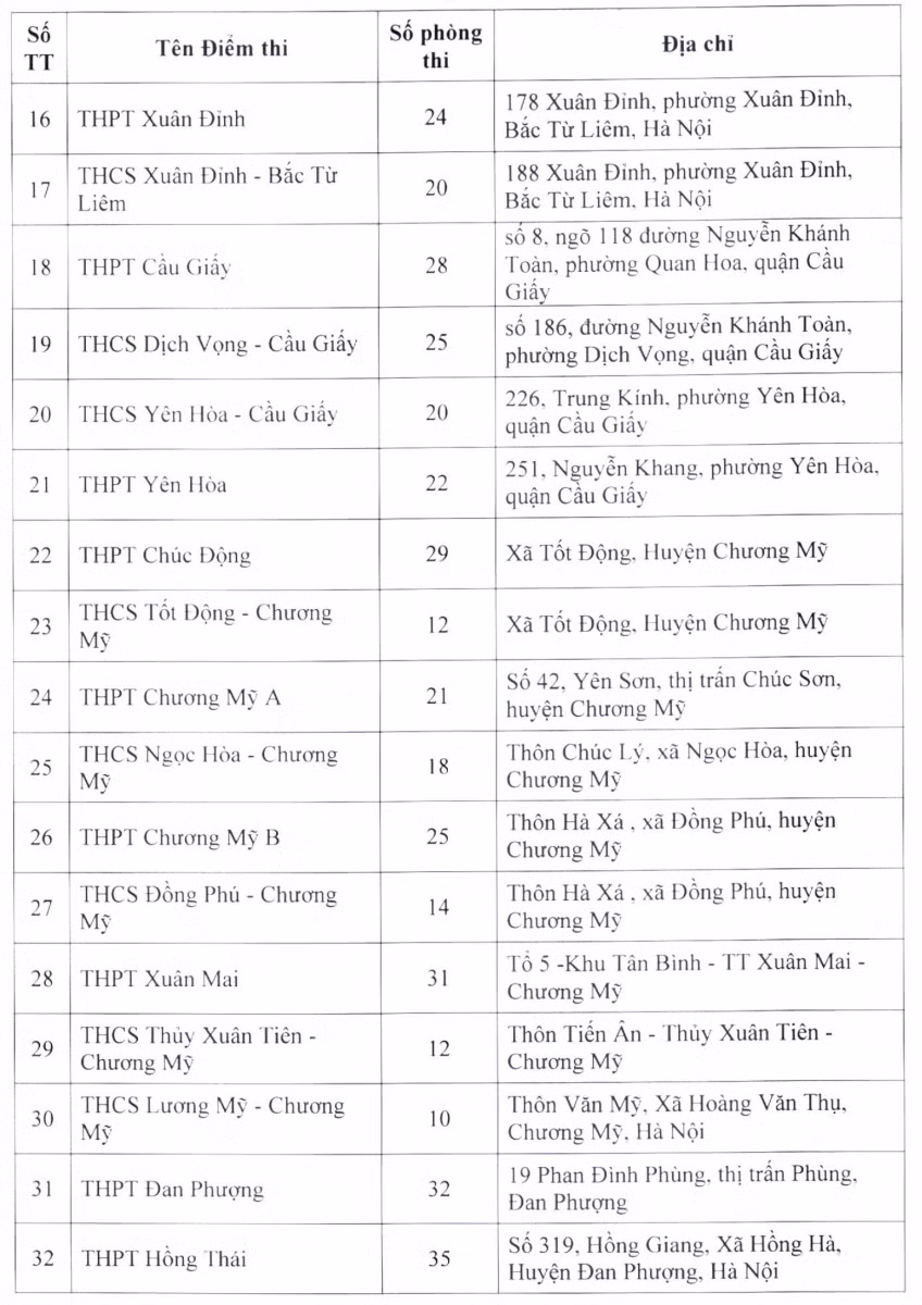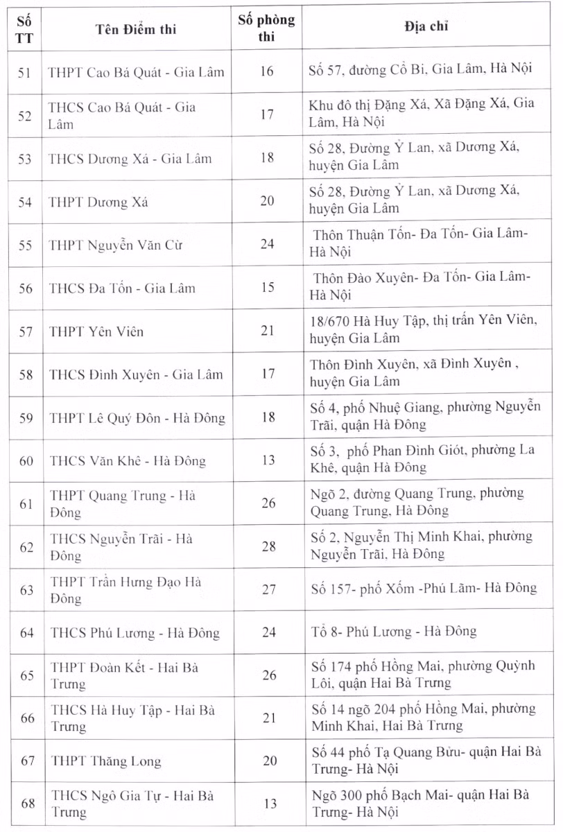 Danh sách các điểm thi vào lớp 10 THPT tại Hà Nội: