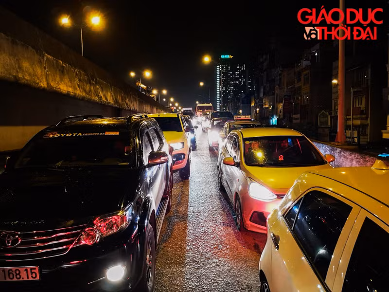 | Hàng dài xe ùn tắc hàng tiếng đồng hồ trên đường trên cao trong đêm |