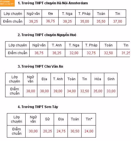 Cụ thể mức điểm vào các trường chuyên đợt 2 của Hà Nội như sau: