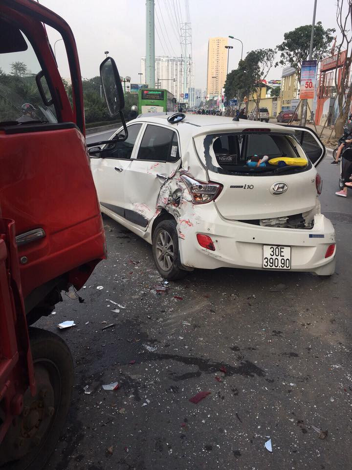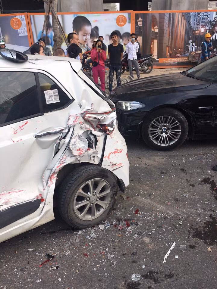 Một nhân chứng cho biết, thời điểm trên, mọi người tham gia giao thông trên đường Tố Hữu (đoạn đường gần nút giao thông Mộ Lao - Tố Hữu (phường Trung Văn, Hà Nội) thì 4 chiếc xe nói trên bất ngờ đâm liên hoàn vào nhau. Trong số các xe này, có một ô tô mang biển xanh.