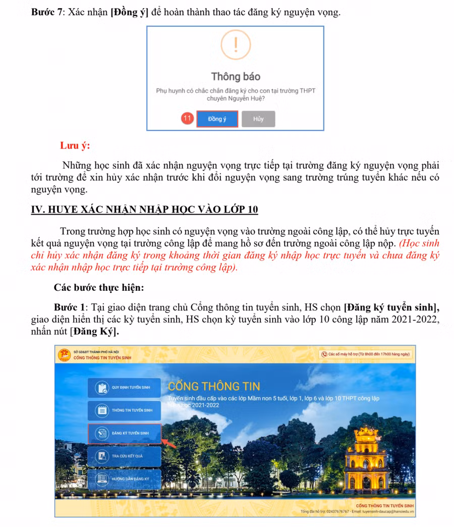 Trong thời gian tuyển sinh trực tiếp, nếu muốn điều chỉnh nguyện vọng đã trúng tuyển, học sinh phải liên hệ với nhà trường để hủy nhập học trước khi xác nhận nhập học ở nguyện vọng mới.