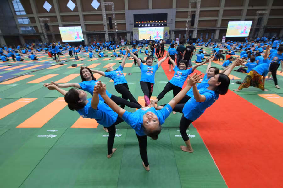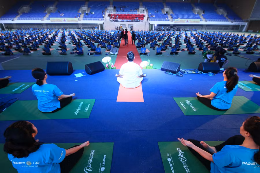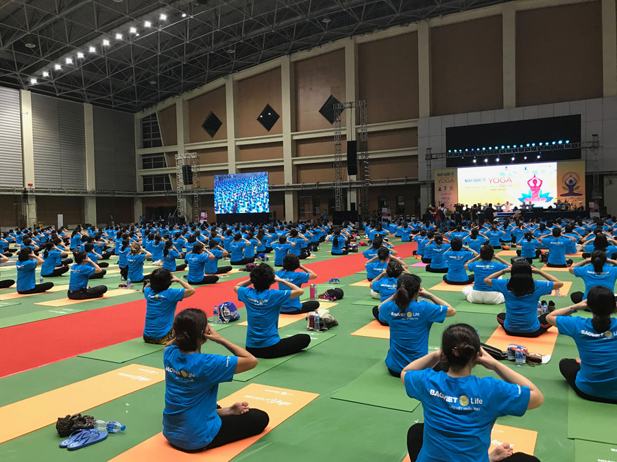 Tại Hà Nội, Lễ kỉ niệm ngày Quốc tế Yoga đã diễn ra từ 19h với trọng tâm là phần trình diễn Yoga tập thể của gần 1.500 người trong màu áo xanh thiên thanh yên bình và những động tác thư thái, uyển chuyển hài hòa giữa con người và trời đất. Rất nhiều Câu lạc bộ Yoga tại thành phố Hà Nội cũng như các tỉnh thành lân cận đã hưởng ứng và quy tụ về sự kiện này. Tại đây, cùng Đại Sứ Quán Ấn Độ và Bảo Việt Nhân thọ, họ trở thành những đại sứ lan tỏa một lối sống tích cực và an lạc, một thói quen tập luyện để cân bằng tâm trí, giải tỏa căng thẳng trong cuộc sống hối hả bộn bề lo toan.