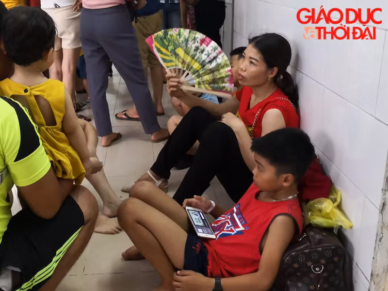 Có mặt tại nhiều bệnh viện tại Hà Nội vào khung giờ khoảng 12 - 13 giờ trưa... dễ dàng bắt gặp cảnh tượng bệnh nhân và người nhà ngồi, nằm vạ vật khắp các phòng khám, phòng chờ, nơi tiếp đón bệnh nhân, các lối ra vào...và tìm mọi cách chống nóng.