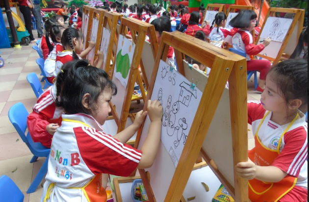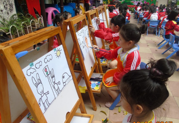 Được biết, ngày hội được tổ chức trong hai ngày. Ngày 19/4, các cháu tham gia thi vẽ tranh với chủ đề về các "câu chuyện bé thích" ở 3 khối lớp.