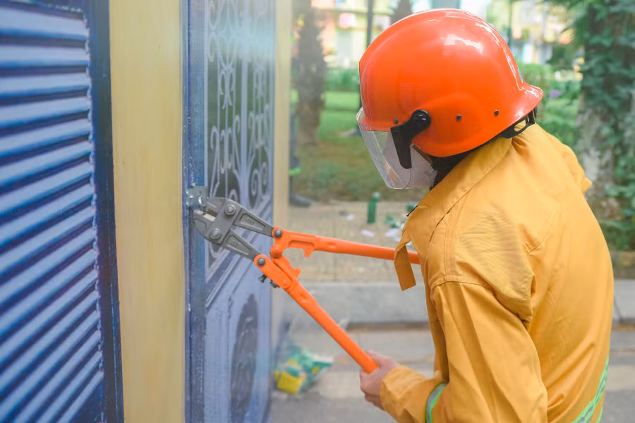 | Các đội thi phá khóa, giải cứu người bị nạn trong môi trường khói. |