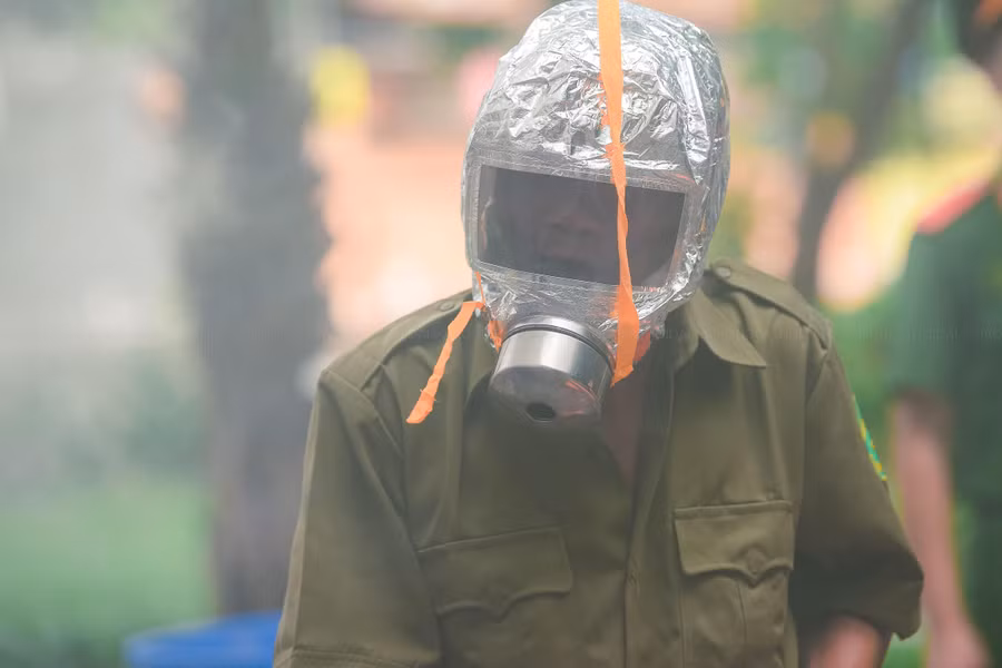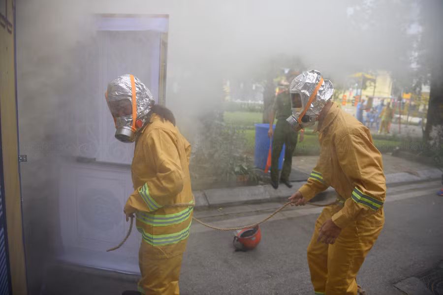 | Thực hành cứu người bị nạn trong môi trường khói. |