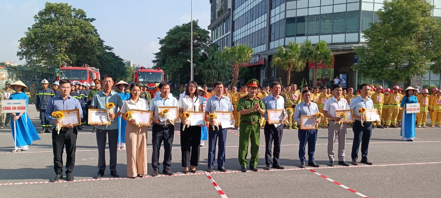 Nhân dịp này, Đại tá Lê Đức Hùng - Trưởng Công an quận Bắc Từ Liêm đã trao khen thưởng điển hình tiên tiến tới 10 tập thể UBND phường và cơ sở đạt danh hiệu điển hình tiên tiến trong công tác PCCC năm 2022 do Giám đốc Công an TP Hà Nội công nhận.