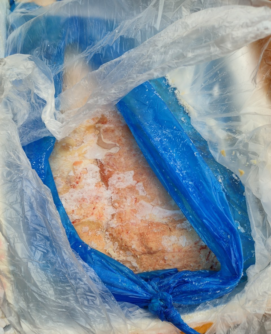 Tại thời điểm kiểm tra, số thực phẩm trên đã bốc mùi hôi thối. Chủ hàng không có hóa đơn chứng từ chứng minh nguồn gốc xuất xứ để tiếp tục xác minh và xử lý theo quy định của pháp luật.