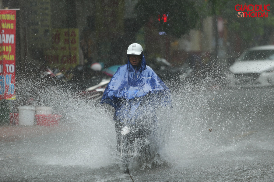 | Chỉ sau 30 phút mưa, nhiều tuyến phố trong nội thành Hà Nội đã biến thành sông. |