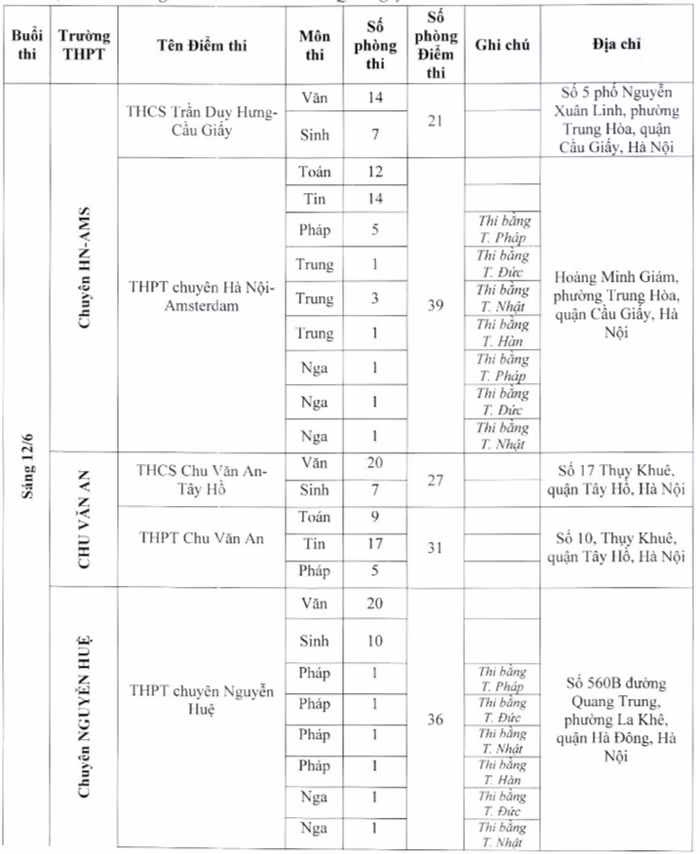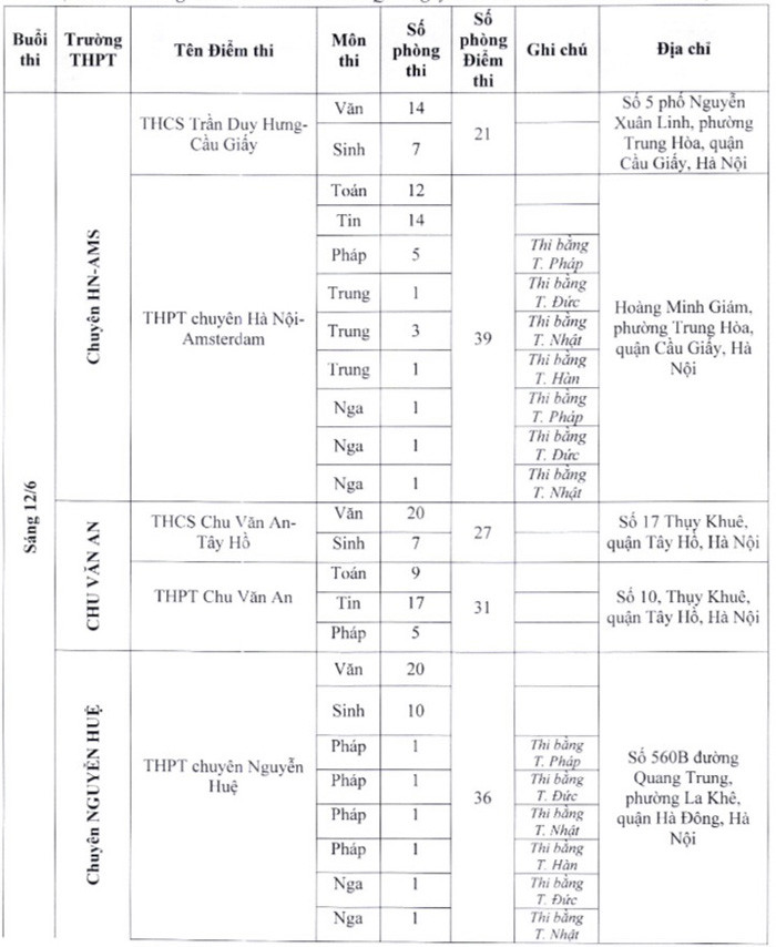 Danh sách 17 địa điểm thi vào lớp 10 chuyên tại Hà Nội: