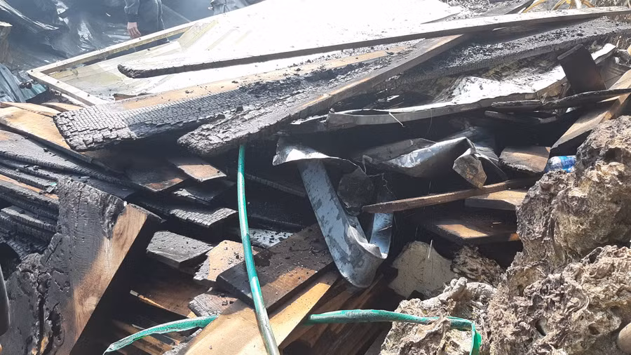 Đám cháy thiêu rụi toàn bộ căn nhà trong ngõ 196 phố Ngọc Trì, Thạch Bàn.