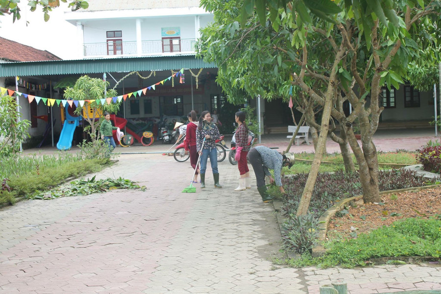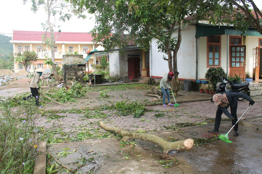 Thầy giáo Trần Xuân Đạt – Phó Hiệu trưởng Trường Tiểu học và THCS Kỳ Nam (TX Kỳ Anh) biết: “Bão số 10 đã làm hư hại, tốc mái, làm vỡ hơn 7.000 viên ngói của 2 dãy nhà cao tầng, nhà văn phòng, nhà nội trú của cán bộ giáo viên; hốt bay 2 mái che 120 m2 ra ngoài ruộng… Với sự giúp đỡ của hàng trăm cán bộ chiến sỹ của lực lượng quân đội, công an cùng với cán bộ, giáo viên và các lực lượng tình nguyện, nhà trường quyết tâm sửa sang cở sở vật chất bị hư hỏng, dọn dẹp, vệ sinh xong trong ngày Chủ nhật để thứ 2 đón băt đầu tổ chức lại dạy học”.