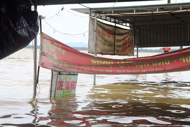 Tại chợ Chùa ở thôn Trung Tiến nước vẫn còn ngập sâu. Một cán bộ xã chở chúng tôi đi ghi hình cho biết, chợ này bình thường hai ngày họp một lần. Hôm nay, nếu không bị ngập thì đã họp chợ đông đúc rồi. Nhưng do ngập nên chợ không một bóng người.