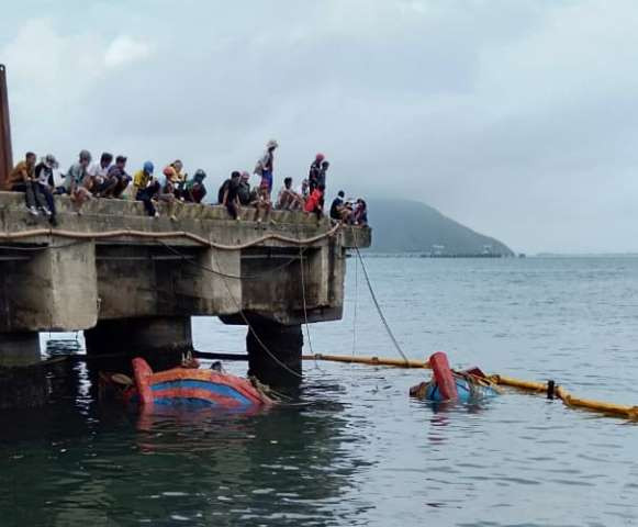 Chiều nay, 9/5, thông tin từ Ban Chỉ huy Biên phòng cửa khẩu cảng Vũng Áng - Sơn Dương (thuộc Bộ Chỉ huy Bộ đội Biên phòng Hà Tĩnh) cho biết, đơn vị này phối hợp với Công ty CP Cảng Quốc tế Lào - Việt, Công ty CP Xăng dầu Dầu khí Vũng Áng, Cảng vụ hàng hải Hà Tĩnh và ngư dân địa phương đang tiến hành trục với 2 tàu cá của ngư dân bị sóng biển đánh chìm khi đang neo đậu tại cảng Vũng Áng (xã Kỳ Lợi, thị xã Kỳ Anh, Hà Tĩnh).