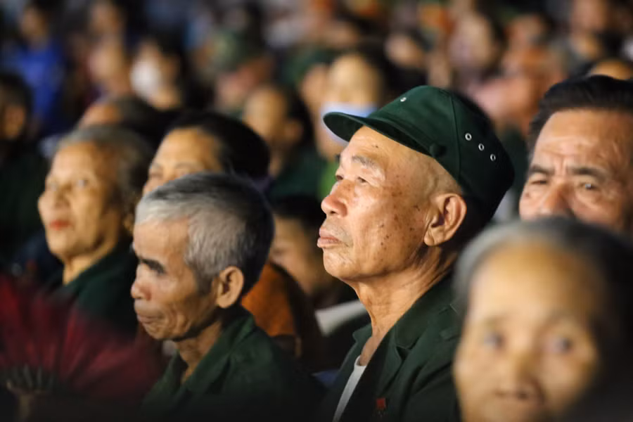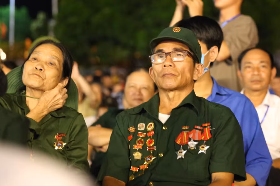 | Hàng trăm cựu chiến binh, TNXP, dân công hỏa tuyến... về tham dự chương trình. |