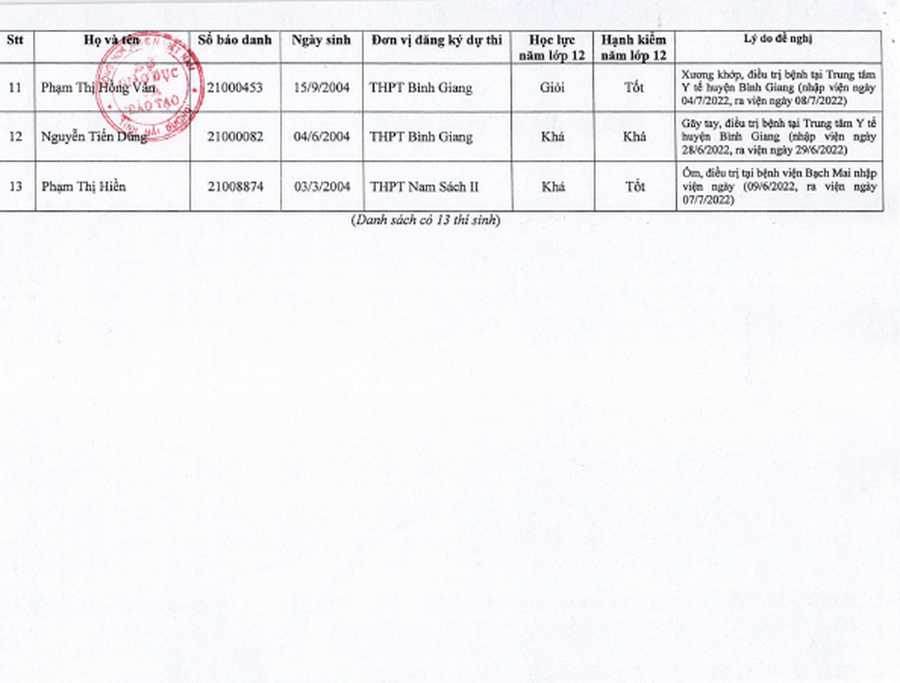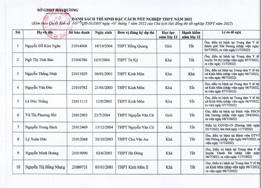 Đây là những thí sinh thuộc diện F0 và bị ốm phải nằm viện điều trị nên không thể tham dự kỳ thi tốt nghiệp THPT. Cụ thể: